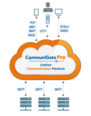 CommuniGate Pro is the most advanced E-mail server on the market. It exchanges E-mail with all other Internet E-mail servers using the SMTP protocol and its extensions, and it provides access to Account mailboxes via POP, IMAP, MAPI, and AirSync protocols.