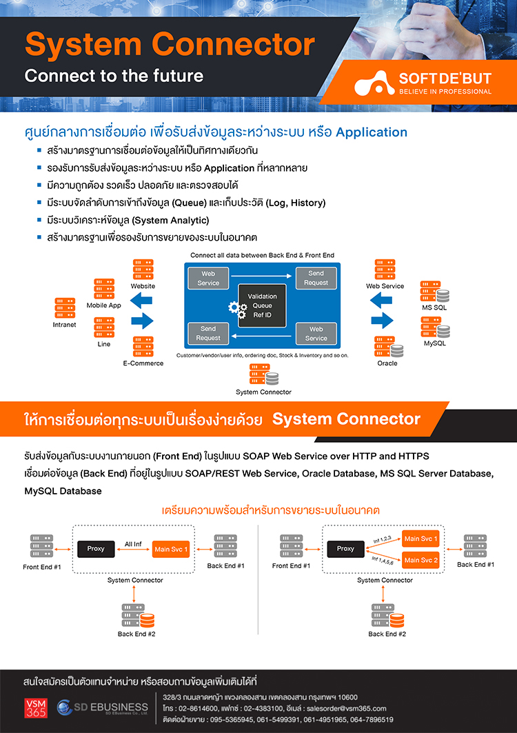 System Connector Connect to the future ผลิตภัณฑ์ที่พัฒนาโดยนักพัฒนาระดับแนวหน้าของบริษัท Softde'but จะดีแค่ไหน คุ้มค่าอย่างไร ศึกษาได้ที่นี่