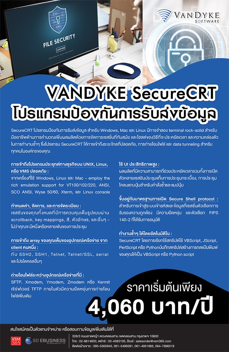 Vandyke SecureCRT โปรแกรมป้องกันการรับส่งข้อมูล ศึกษาเพิ่มเติมได้ที่นี่