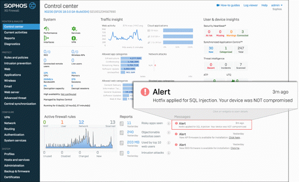 Sophos ได้รับแจ้งว่าหน้า Management Interface ของ XG Firewall มีค่าน่าประหลาดใน Field ปรากฏขึ้น เมื่อทีมงานตรวจสอบจึงพบว่าไม่ใช่บั๊กแต่เป็นเพราะแฮ็กเกอร์ได้โจมตีช่องโหว่ Zero-day ด้วยวิธี SQL Injection โดย Sophos ชี้ว่าคนร้ายได้ใช้ช่องโหว่เพื่อดาวน์โหลด Payload เข้าไปยังอุปกรณ์และขโมยไฟล์ข้อมูลจาก Firewall ได้ต่อประกอบด้วย Hashed Password ของ Admin และ Portal Admin รวมถึงบัญชีที่ใช้เข้าถึงอุปกรณ์จากทางไกล อย่างไรก็ดีไม่กระทบกับ Third-party Authentication เช่น AD หรือ LDAP