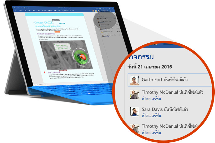 Office 365 มีแอปพลิเคชันที่คุณคุ้นเคยและไฟล์ที่สามารถเข้าถึงได้และอัปเดตอยู่เสมอ ไม่ว่าจะเป็นออนไลน์หรือออฟไลน์ จะอยู่ที่โต๊ะทำงานหรือกำลังเดินทาง จาก PC, Mac, iPad®แท็บเล็ต Android™ หรือโทรศัพท์ของคุณ คุณสามารถเข้าถึงข้อมูลที่ต้องการ ได้ทุกเมื่อไม่ว่าคุณจะอยู่ที่ไหน