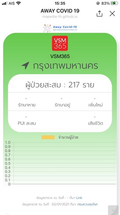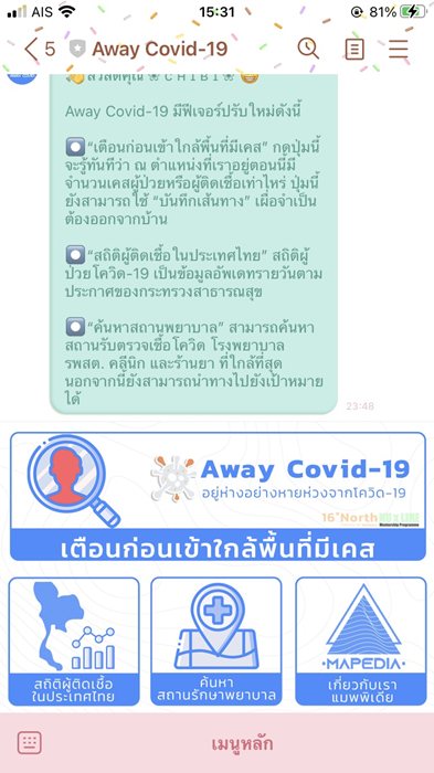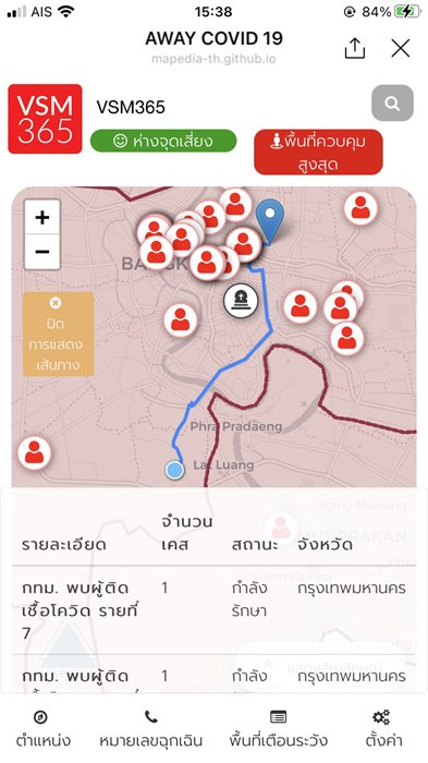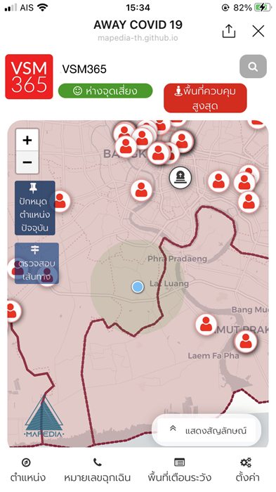 Away Covid-19 ที่ทาง MAPEDIA (แมพพิเดีย) ได้พัฒนาขึ้นมา อำนวยความสะดวกให้กับทุกคนสามารถตรวจสอบตำแหน่งของตนเองว่ามีจำนวนผู้ป่วยติดเชื้อเท่าไหร่, สถิติผู้ติดเชื้อในประเทศไทย และค้นหาสถานรักษาพยาบาล ทีมงาน VSM365 ได้ทดลองการใช้งานแล้ว ต้องบอกว่าสะดวกและมีประโยชน์มาก ๆ เลยค่ะ ไม่ต้องดาวน์โหลดแอปเพิ่มเติม ใช่งานง่าย เพียงแค่คลิก Add Line ของ