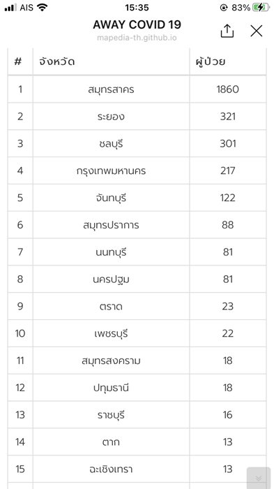 (ยอดผู้ติดเชื้อทุกจังหวัดในประเทศไทย)