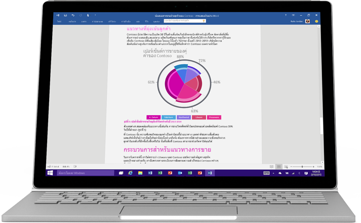 • สร้างเอกสารที่สวยงาม ค้นพบข้อมูลเชิงลึก และนำเสนอได้อย่างชัดเจน เมื่อใช้ Office 365 แอปพลิเคชัน Office ที่คุณมีจะเป็นเวอร์ชันล่าสุดอยู่เสมอ