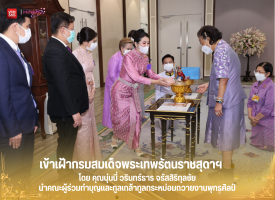 เข้าเฝ้ากรมสมเด็จพระเทพรัตนราชสุดาฯ โดย คุณนุ่นนี่  วรินทร์ธาร จรัสสิริกุลชัย  นำคณะผู้ร่วมทำบุญและทูลเกล้าทูลกระหม่อมถวายงานพุทธศิลป์