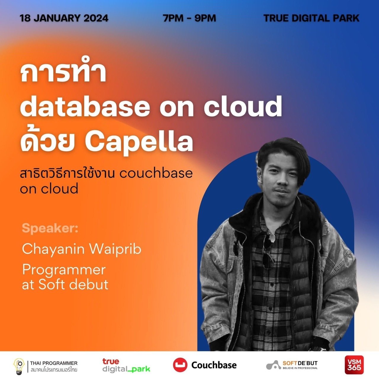 และได้รับเกียรติจาก คุณ ชญานิน ไหวพริบ (Programmer) จาก Soft de'but ในหัวข้อ " การทำ database on cloud ด้วย Capella " และสาธิตวิธีการใช้งาน Couchbase on Cloud ผ่าน Capella ซึ่งเป็นการทำ database on cloud ที่สะดวกและมีประสิทธิภาพ การใช้งาน Couchbase on Cloud ทำให้การจัดการฐานข้อมูลเป็นเรื่องง่ายและมีประสิทธิภาพ ทั้งในด้านการปรับตัวเลือกในการเข้าถึงข้อมูลและความปลอดภัยให้ดียิ่งขึ้นอีกด้วย