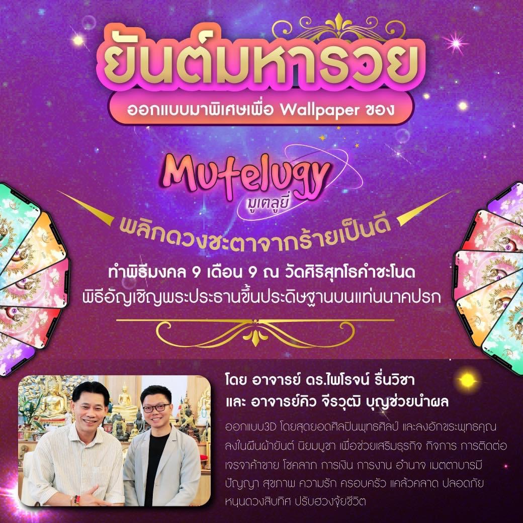และ อาจารย์คิว จีรวุฒิ ได้แล้ววันนี้ ที่บ้านสายมูไฮเทค วอลเปเปอร์เสริมดวง มูเตลูยี่ ที่ Line @mutelugy