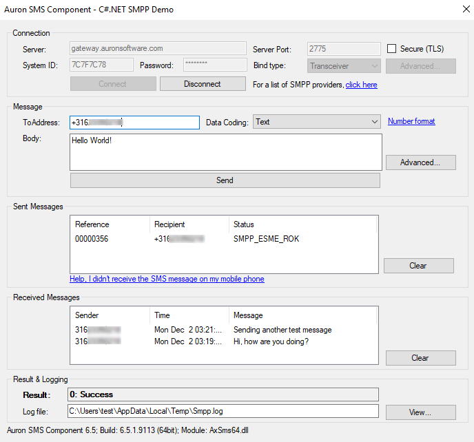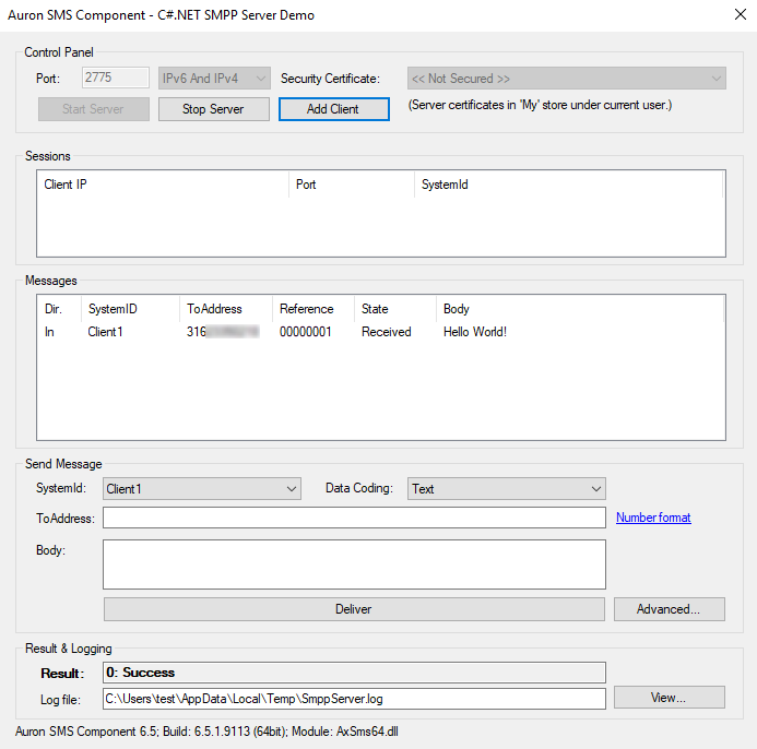 - TLS / SSL Support for SMPP client and server objects as well as HTTP objects