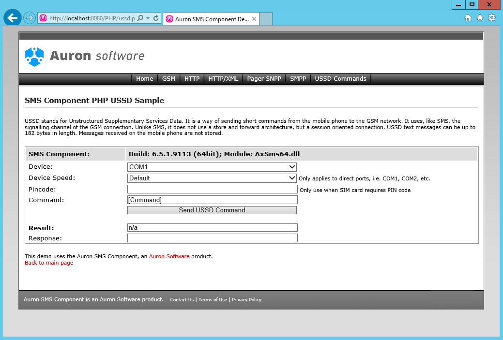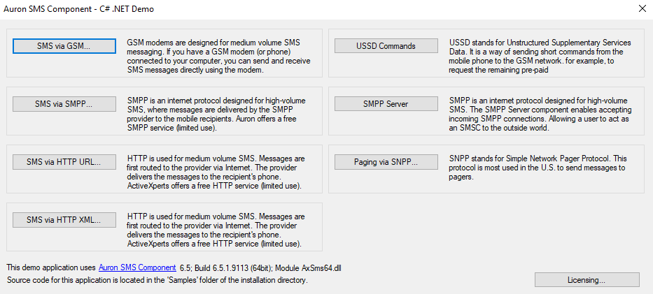 Use the Auron SMS Component on the Windows platform with any programming language that has basic COM support.