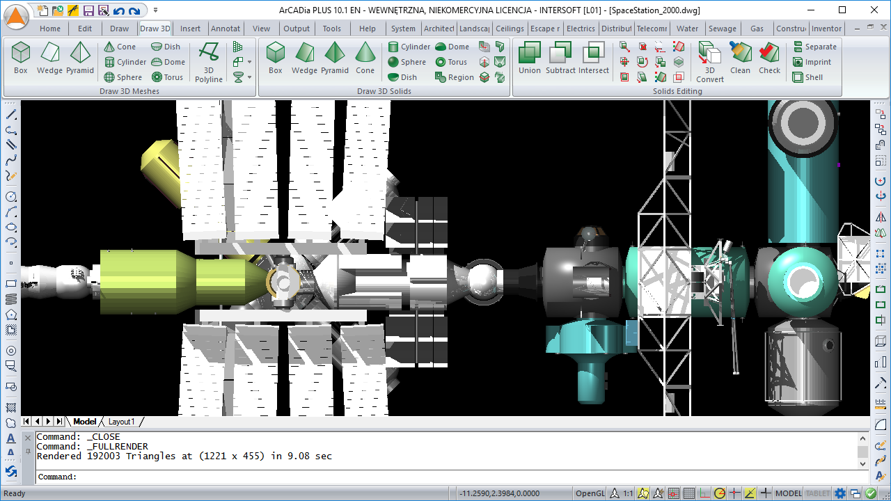 - Creating 3D drawings (wedge, cone, sphere, cuboid, cylinder, etc.) through drawing and full modification of all elements and the option to read ACIS solids.