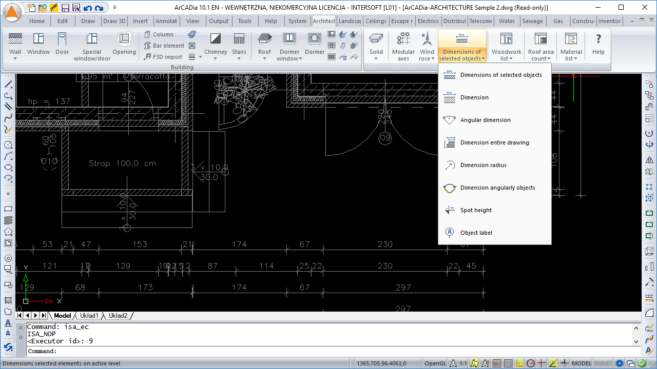 - The automatic dimensioning of the entire floor plan by selecting dimensioning lines (total external, external for protruding elements, rooms and walls, windows and frames, as well as openings).