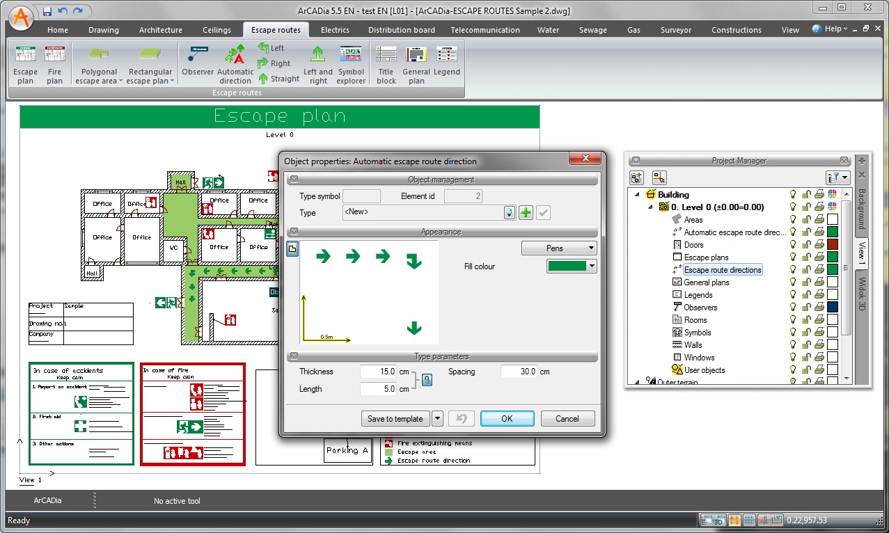ArCADia-ESCAPE ROUTES is an industry-specific module of the ArCADia BIM system, based on the ideology of Building Information Modeling (BIM). The program can be used to create a network of evacuation routes in buildings. Evacuation routes can be visualised and printed in sizes depending on the user's needs. The program is intended for engineers, architects and builders or people in charge of maintenance in public utility buildings.