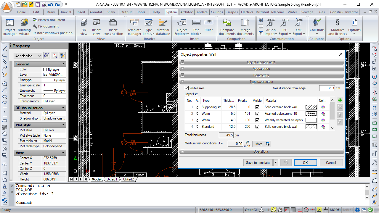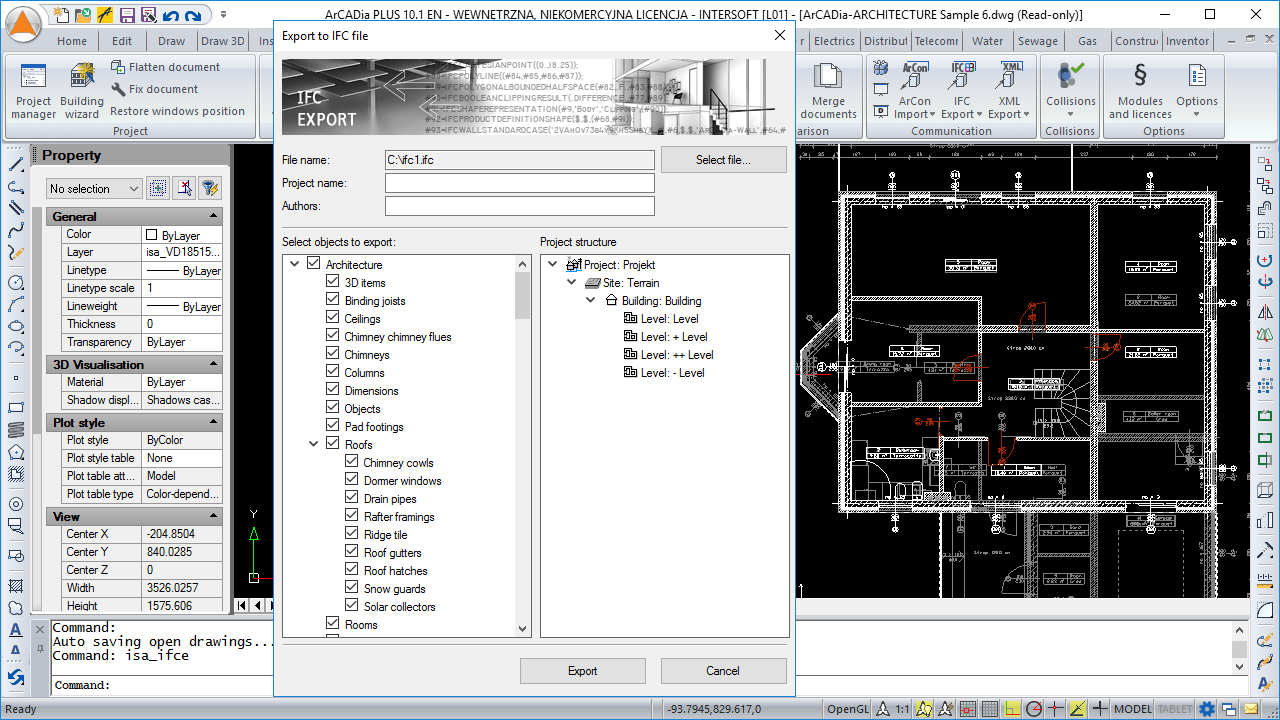 In BIM (Building Information Modelling), i.e. in the object-oriented building design, IFC is one of the most commonly used formats. Files in this format are exported and imported to such programs as, among others, Revit, ArchiCAD, Tekla Structures and Allplan. Projects created in a BIM system are not only three-dimensional buildings with set textures but objects that convey information on their properties, eg. materials, with all coefficients, values and additional data that can be assigned to an element. ArCADia-IFC, in the new version of the ArCADia system, changes the approach to IFC file reading by importing them without any conversion. This allows the model to be loaded more precisely together with all the data of any object for creating each building. Elements are not converted into system objects and, thanks to this, all files are loaded regardless of the structure of the model that no longer needs to be analogous to the structure of the building existing in the ArCADia system. Any number of IFC files can be loaded into ArCADia and can coexist with the systems models in the project. The models are independent and, yet still, when all data on objects is transferred, they are subject to verification of designs with collision options and finding, e.g., crossings between structure elements and different installations, regardless of whether they are imported as IFC model or created with ArCADia system options.