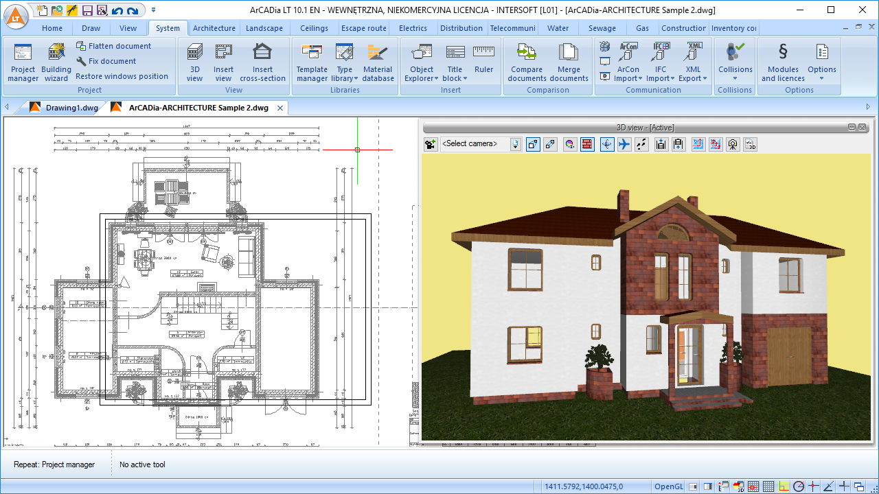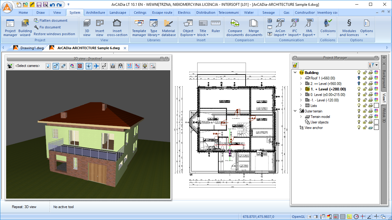 ArCADia LT enables the user to draw and edit 2D documents, load raster images (e.g. geodetic maps), describe drawings using TrueType or SHX fonts, insert blocks from other documents, as well as print the documentation in an intuitive way.