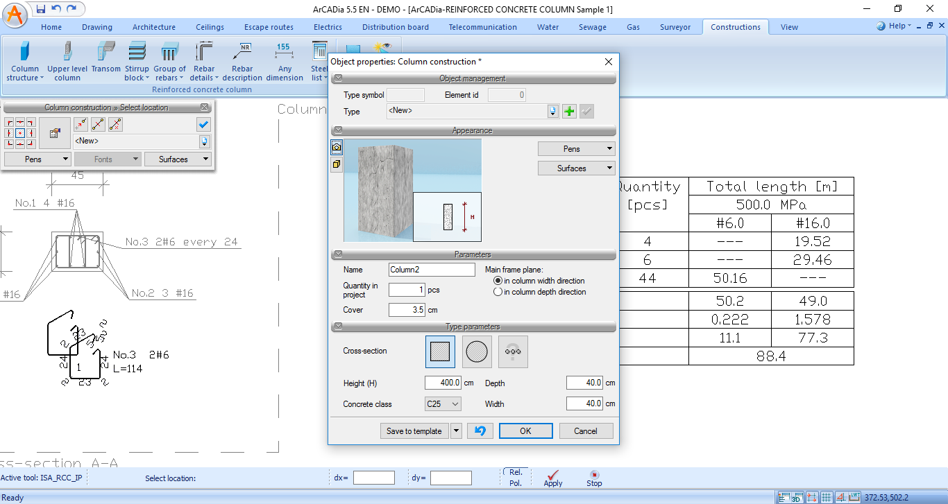 ArCADia REINFORCED CONCRETE COLUMN