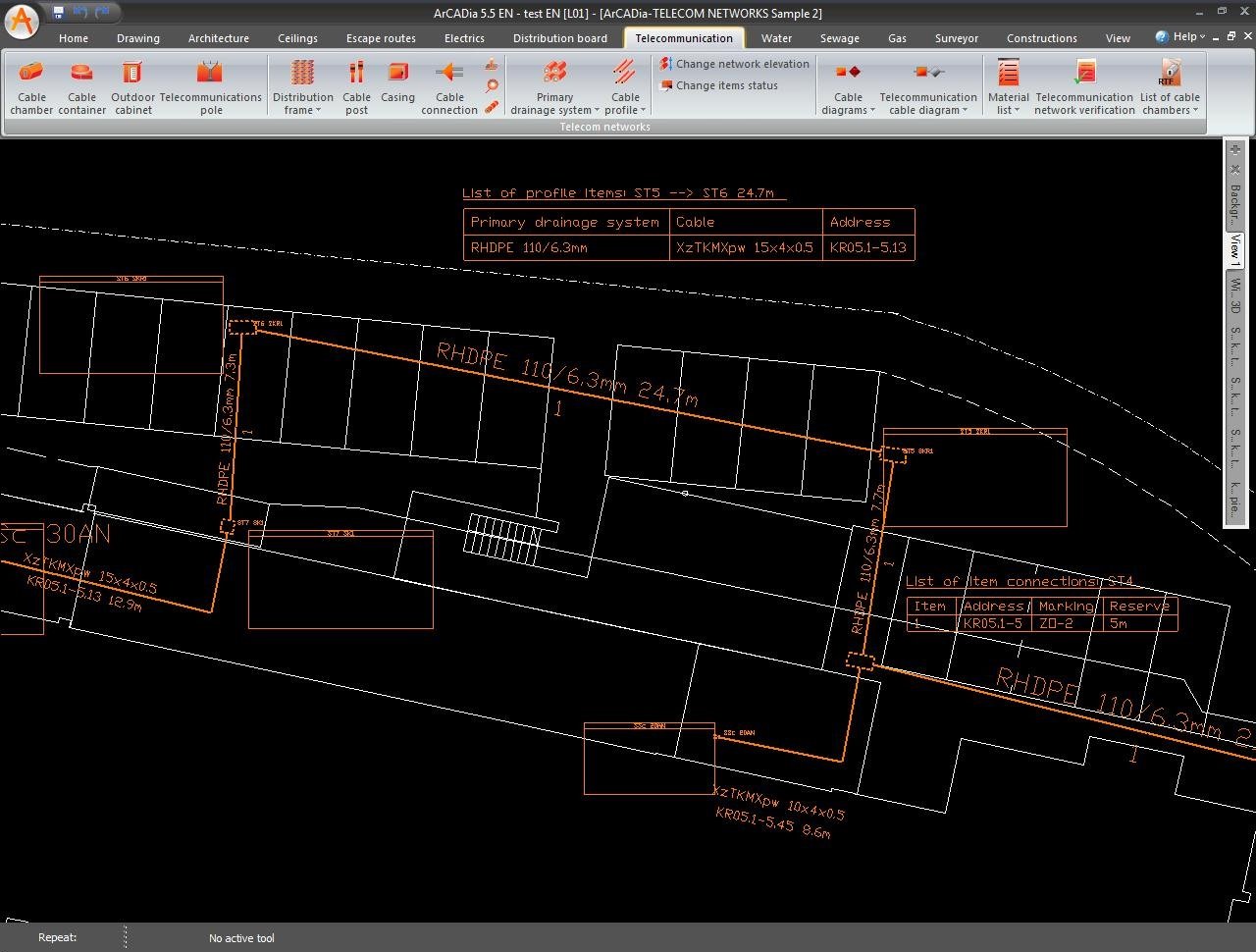 ArCADia-TELECOMMUNICATIONS NETWORKS MINI enables the development of the design documentation for external fibre-optic and copper telecommunications networks. The program is intended primarily for the design engineers of external telecommunications networks and for design and contracting companies that deal in developing network concepts, industry-specific drawings, compiling an inventory of the existing network and for all persons working in the telecommunications industry.