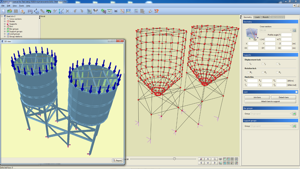 Data are intuitively entered in the program - the system geometry can be defined using only a mouse. The program works with CAD-type applications and the ArCADia-ARCHITECTURE system. Basic function generators are available. The program contains a library of rolled and cold-formed profiles, reinforced concrete and timber elements. The program can be used for easy insertion of planar and spatial bar systems, both small systems comprising a number of bars, and large 3D structures containing hundreds of bars and nodes. Therefore, it is possible to count such construction systems as: multi-level and multi-bay frames, planar and spatial trusses, lattice towers, surface bar structures, bar grates, etc. The program makes it possible to work with dimensioning modules according to Eurocodes: EuroStal, EuroŻelbet and EuroStopa.