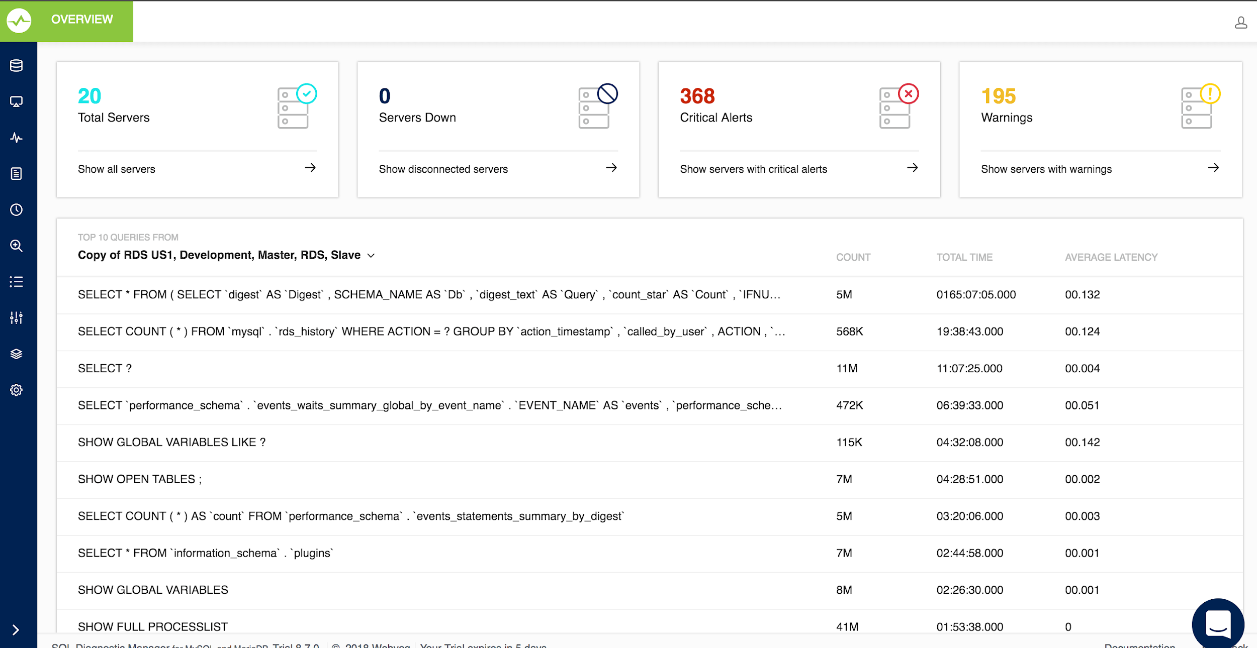 Run SQL Diagnostic Manager on Microsoft Windows and Linux. Monitor MySQL and MariaDB in the cloud including database-as-a-service.