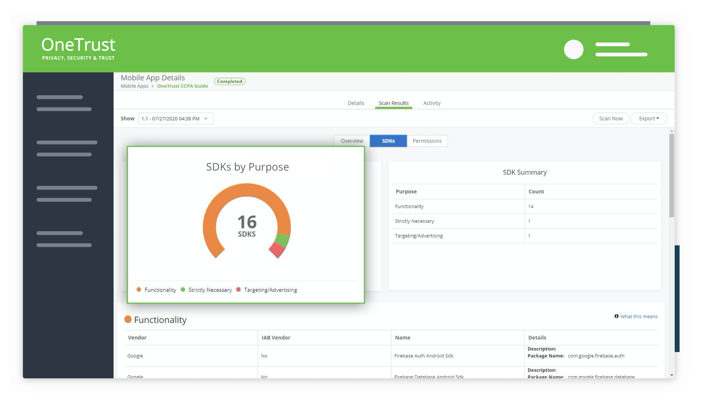 Global privacy regulations like the CCPA and GDPR, as well as tech giants such as Apple, have put a brighter spotlight on mobile app technologies and how apps collect data and share it with third-parties. OneTrust’s solution enables businesses to scan for SDKs and IDFA, understand how apps are sharing data with other third-parties, configure a banner to collect consent when needed, and build a centrally located, historical consent database.