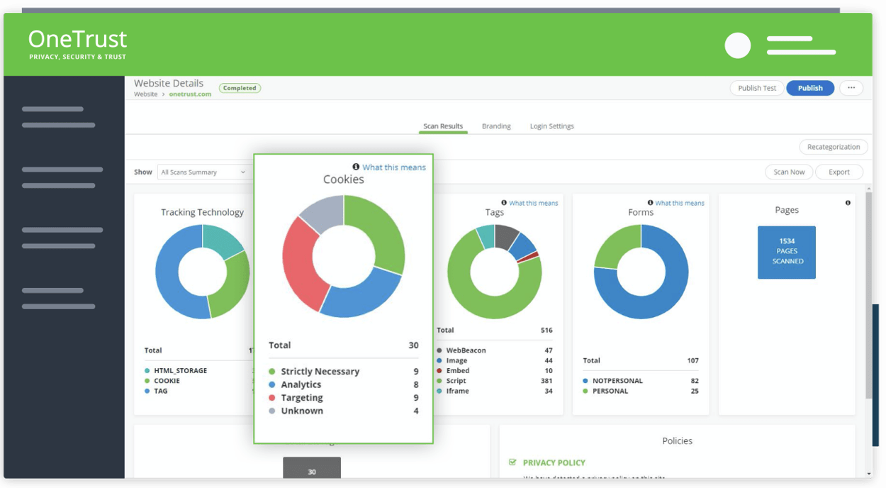 Continued scanning to keep an evergreen inventory of tracking technologies and up to date policies across your web properties
