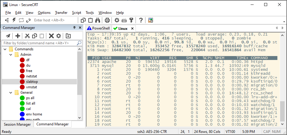 Leverage the high-productivity GUI with time-saving capabilities including multi-session launch, tabbed sessions, tab groups, tiled sessions, cloned sessions, a button bar and Command Manager for repeated commands, and mapped keys.