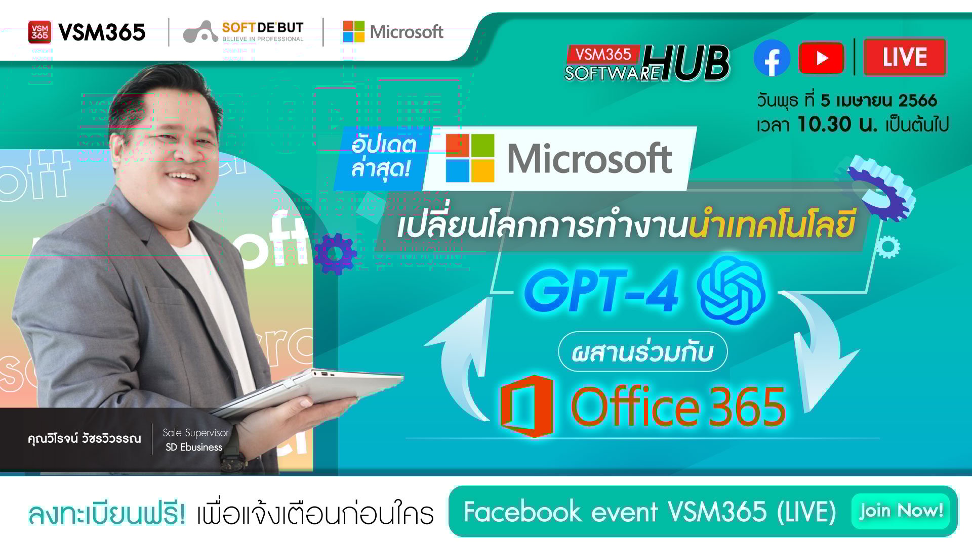 🔴 [ LIVE ] "เปิดตัวล่าสุด! Microsoft เปลี่ยนโลกการทำงาน นำเทคโนโลยี GPT4 ผสานร่วมกับ Office 365 "