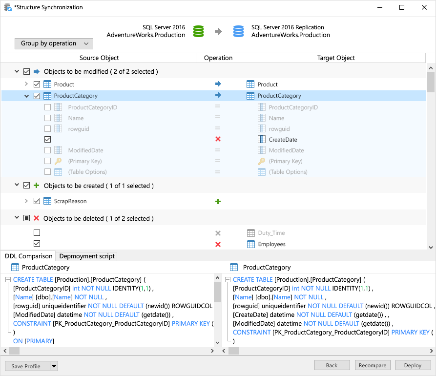✔ การประสานโครงสร้าง :เปรียบเทียบวัตถุก่อนทำการซิงค์ฐานข้อมูลของคุณ Navicat 12 ในการเปรียบเทียบและระบุความแตกต่างระหว่างฐานข้อมูลสองฐาน และแสดงการเปรียบเทียบ DDL ทำให้ง่ายต่อการค้นหา, เลือกและจัดลำดับสคริปต์การซิงโครไนซ์ใหม่เพื่ออัพเดตฐานข้อมูลปลายทางได้อีกด้วย