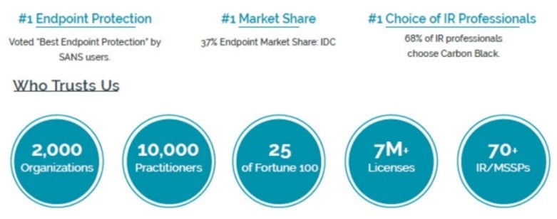 Carbon Black เป็นอันดับ 1 ใน ด้านของ Endpoint Security และครองส่วนแบ่งตลาดเป็นอันดับ 1
