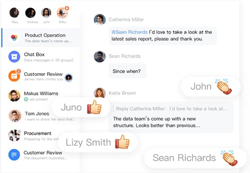 Emoji reactions, message threads, votes, and more offer a healthy foundation for an engaging collaborative experience.