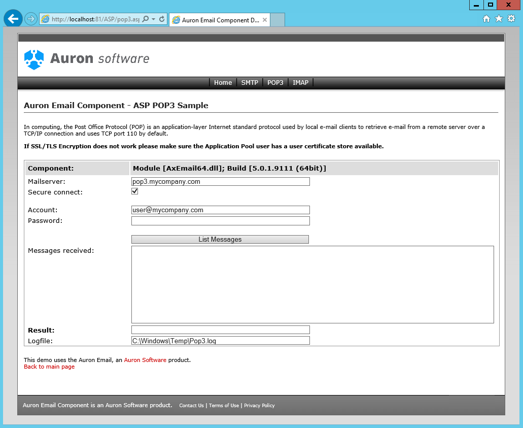 Use the Auron E-mail Component on the Windows platform with any programming language that has basic COM support.
