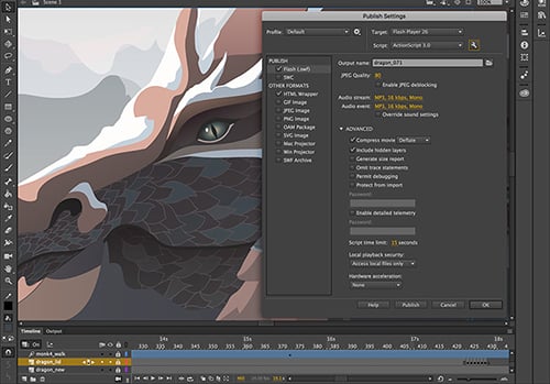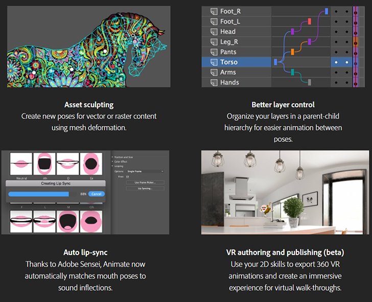 Sketch and draw more expressive characters with pressure- and tilt-sensitive vector brushes that work like the real thing. Make your characters blink, talk, and walk with simple frame-by-frame animation. And create interactive web banners that respond to user interactions such as mouse movement, touch, and clicks.