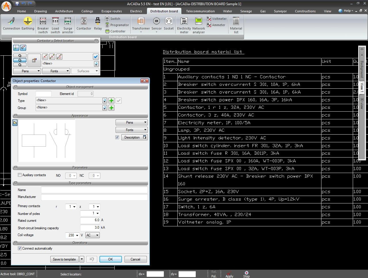 ArCADia-DISTRIBUTION BOARDS program can be used to create a diagram of a designed switchgear or any circuit diagram and perform basic technical calculations. The library of electric device symbols can be used to design an electrical system. Symbols can be edited and assigned technical parameters. Apart from the possibility of producing the diagram of a switchgear in an efficient way, the program can also be used to automatically create the diagram of a switchgear designed using the ArCADia-ELECTRICAL INSTALLATIONS overlay. The combination of automation algorithms to create the circuit diagrams used in the application and the database of symbols for electric devices and performance of basic calculations ensures a perfect tool for drawing circuit diagrams.