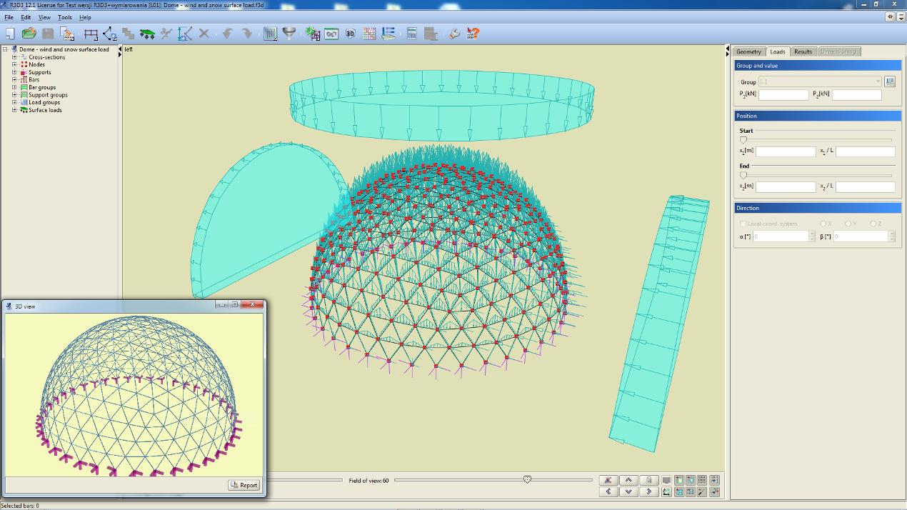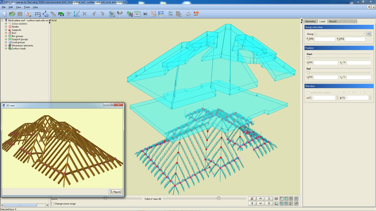 - The possibility to set individual groups of loads as active or inactive (not considered during calculations), visible and invisible.