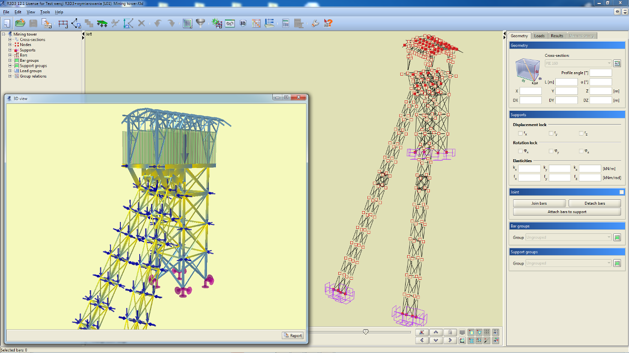 - The possibility to modify nodes, supports, bars and loads in groups.