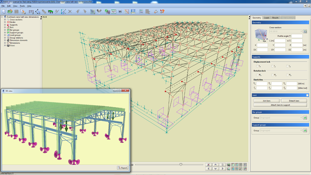 The R3D3-Rama 3D program is designed for construction engineers. It is used for static calculations and dimensioning of planar and spatial bar systems. Thanks to the convenient and clear user interface, the program can be used not only for design, but also for educational purposes.