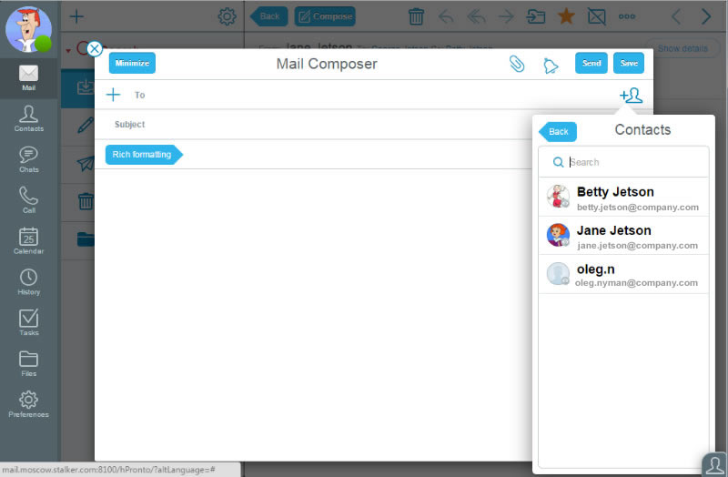CommuniGate Pro - Single Servers 300 users CommuniGate Pro - Single Servers 300 users สอบถาม สั่งซื้อ ต่ออายุ ขอใบสนอราคา สามารถติดต่อได้ที่ [email protected] หรือ 098-952-4147, 098-253-8222, 095-536-5945 ราคารวม 00.00 บาท จำนวนผู้ใช้งาน ภาพรวม The main CommuniGate Pro subsystems include: Identity Management Multi-Domain architecture (field-proven for over 120,000 domains per system), with multihoming and shared-IP configurations. Account concept, including Mailbox Storage, File Storage, Account Settings, and Account Information databases. Groups, Forwarders, Aliases, and other Domain Objects. Meta-Directory with Local and Remote Units. LDAP access to Directory and Account databases. External Authentication mechanism for integration with 3rd party solutions. RADIUS services. Billing system with multiple per-Account Balances and reservations. Storage Management Mailbox Storage with multiple Mailboxes, Shared access, ACLs. Mailbox formats - text files, file folders, other data containers. File Storage with public and private folders, virtual files. Groupware Information storage and processing using the iCalendar and vCard standards. Mail Transfer Unified Message Queue processing. ESMTP and LMTP mail exchange services. Anti-Spam and other protection mechanisms. Plugin Interface for high performance virus, spam, and content filtering. Automated Mail Processing Rules. Mailing List manager with automatic bounce processing and a Web interface to list archives. Remote Account Polling using the POP3 protocol. External Program Delivery for custom applications. Automated Invitation processing for shared resource scheduling. Real-Time Signaling Unified Signal processing. XIMSS protocol for Instant Messaging, Presence, audio and video communications. SIP protocol for Instant Messaging, Presence, audio and video communications, desktop sharing and real-time collaboration. XMPP protocol for Instant Messaging and Presence. SMPP protocol for Instant Messaging via SMS. NAT Traversal mechanisms (near-end and far-end) for XIMSS, SIP, RTP, and TCP-based media protocols. Registrar, forking Proxy, and Presence server functionality. Automated Signal Processing Rules. Event packages for presence, message-waiting, registration, dialogs, and other services. STUN server for client-side NAT Traversal solutions. Parlay X Interface. Real-Time Application Environment Domain-specific application environments. Media Server component for call termination and conferencing with the built-in NAT traversal and encryption support. CG/PL language for quick and robust application design. Built-in operations for call control, bridging, and multi-party conferencing. Integrated Access to Message and File stores. Data Access Services Multi-protocol, multi-client simultaneous access to all Account data. POP3 and IMAP4 mail client access. MAPI interface for Microsoft® Windows clients (Outlook and other MAPI-enabled applications). WebUser Interface to Mailbox, Groupware and File Stores, to Settings and Information databases, to the Signaling and Message Transfer facilities. Multi-lingual Skins for customizable HTML, WAP/WML, and I-Mode Interfaces. XIMSS interface providing access to Mailbox, Groupware and File Stores, to Settings and Information databases, to the Signaling and Message Transfer facilities. HTTP, WebDAV, FTP, and TFTP access to Account File Stores. AirSync interface to E-mail and Groupware data for Microsoft® Windows Mobile clients (server-based ActiveSync). CalDAV interface to Calendar and Tasks Mailboxes. Publish/Subscribe (WebCal/iCal) HTTP-based operations with Calendar and Tasks mailboxes. CardDAV interface to Contacts Mailboxes. ACAP access to the Account Information database. Advanced Security SASL Secure Authentication methods. GSSAPI (including Kerberos V5) authentication, SSO (single sign-on), and security. Client Certificate-based Secure Authentication methods. Secure Mail (S/MIME) WebMail implementation (encryption/decryption, digital signing, signature verification). Automatic Encryption implementing secure information storage. SSL/TLS Secure Transfer for SMTP, SIP, IMAP, POP, HTTP, LDAP, ACAP, PWD and Administration sessions. Lawful Interception functionality. Multi-tier Administration WebAdmin interface for administration, provisioning, and monitoring. CLI/API interface for administration, provisioning, and monitoring. SNMP Agent for remote monitoring. Triggers for proactive monitoring. Poppwd protocol for remote password modification. LDAP-based Provisioning (optional) for integration with legacy systems. BSD syslog Server to consolidate log records from third-party components. Multi-Server Operation Distributed Domains for Distributed multiple single-Server configurations. Static Clusters for Multi-Server Account partitioning. Dynamic Clusters for advanced scalability without Account partitioning. Carrier-grade 99.999%-uptime, field-proven for more than 5,000,000 real active Accounts. Cluster of Clusters for extra-large sites (over 10,000,000 active Accounts).
