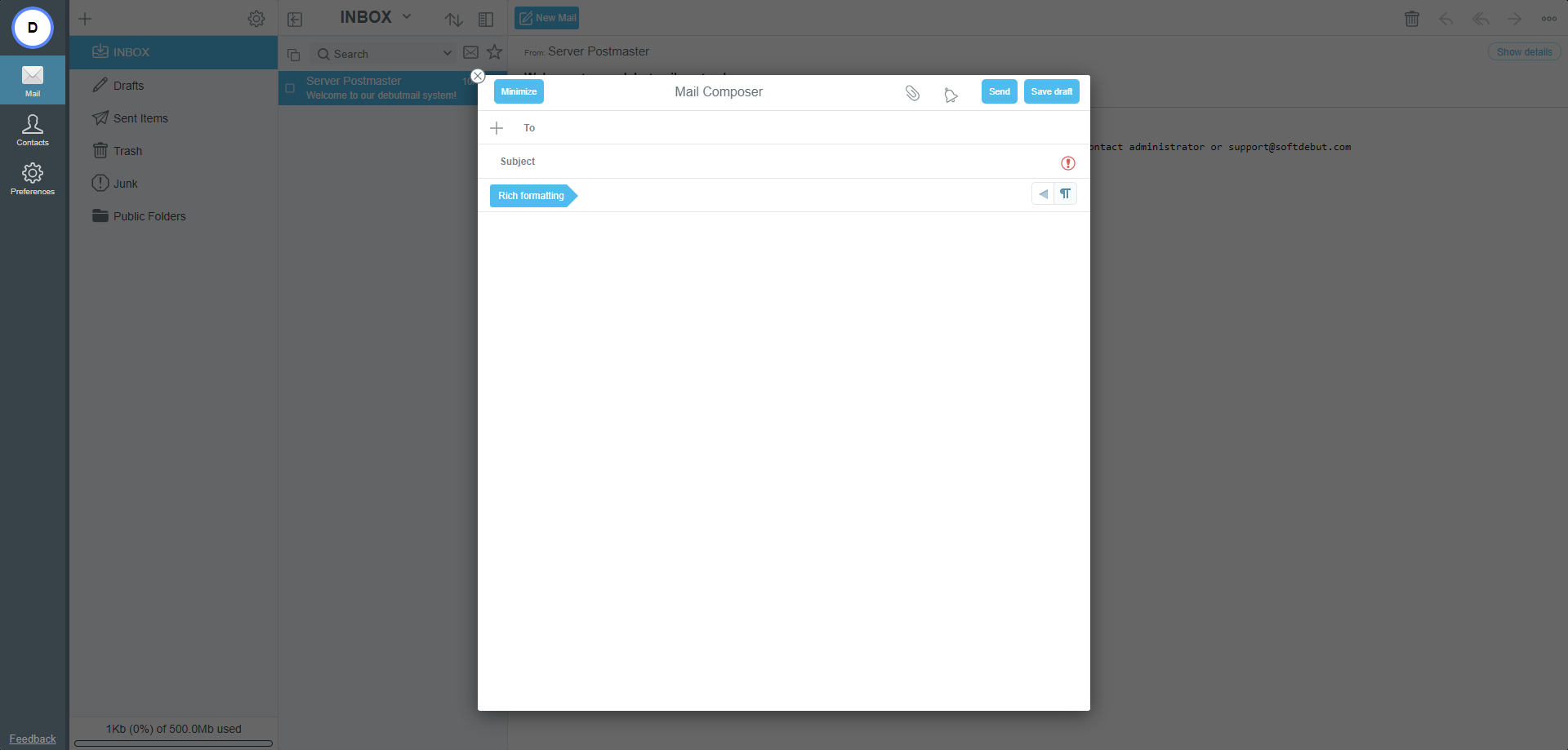 Debut Mail Pro 1 (50 Users) Debut Mail Pro 1 (50 Users) 1 GB/Account หากต้องการย้ายโดเมนหรือต่ออายุโดเมน สามารถติดต่อได้ที่ [email protected] หรือ 098-952-4147, 098-253-8222, 095-536-5945 *ราคาไม่รวมค่าบริการ Domain Name **สำหรับลูกค้าใหม่ มีบริการย้ายอีเมลจากระบบเก่าให้ฟรี! ราคารวม 18,000.00 บาท จำนวนผู้ใช้งาน ภาพรวม Debut Mail Pro 1 บริการอีเมลสำหรับบริษัท ธุรกิจ องค์กร จำนวน 50 ผู้ใช้งาน ขนาดพื้นที่ 1 GB ต่อบัญชี เหมาะสำหรับบริษัทหรือธุรกิจขนาดกลาง ฟังก์ชันการใช้งานพื้นฐานของระบบอีเมล ปลอดภัยด้วยระบบ Anti Spam และ Antivirus ราคาไม่รวมค่าบริการ Domain Name สำหรับลูกค้าใหม่ มีบริการย้ายอีเมลจากระบบเก่าให้ฟรี! ฟังก์ชันการใช้งานเฉพาะ Debut Mail Pro Groupware Function การทำงานร่วมกันภายในองค์กร ทั้งการใช้งาน Mail, Contacts, Calendar, Tasks, Notes รวมทั้งสามารถ Shared Calendar และ Public Folders ได้ MAPI ผู้ใช้สามารถ Synchronize ทุก Mailbox, Contacts, Calendar, Tasks, Notes, Shared Folders และ Public Folders บนโปรแกรม Microsoft Outlook ได้ รวมถึงตั้งค่า Rules และ Vacation Message Share Mailbox การอนุญาตให้ผู้อื่นเข้ามาจัดการอีเมลได้ เช่น การ Share Public Folder, การ Share ตารางนัดหมาย, การ Share Global Contact ของบริษัทหรือของแผนก เป็นต้น ฟังก์ชันการใช้งานพื้นฐาน Company First Page บริการออกแบบหน้าแรกของเว็บไซต์ล็อกอินอีเมล (Webmail) ในรูปแบบของบริษัท ธุรกิจ องค์กร พร้อมแสดง Logo เพื่อเป็นเอกลักษณ์เฉพาะ (*ฟรี ตั้งแต่ 200 ผู้ใช้งานขึ้นไป). Company Style บริการออกแบบหน้าแรกและแต่ละหน้าของเว็บไซต์อีเมล (Webmail) ในรูปแบบของบริษัท ธุรกิจ องค์กร พร้อมแสดง Logo เพื่อเป็นเอกลักษณ์เฉพาะ (*ฟรี ตั้งแต่ 200 ผู้ใช้งานขึ้นไป) General Email Services ระบบการรับ-ส่ง อีเมล, การส่งไฟล์แนบพร้อมอีเมล, การส่งต่ออีเมล (Forward), ความสำคัญของอีเมล (Priority) General Mailboxes กล่องอีเมลพื้นฐานของระบบอีเมล Inbox, Drafts, Send Items, Trash, Junk, Contacts Multi Mailboxes สามารถเพิ่มกล่องข้อความได้ ในกรณีต้องการจัดหมวดหมู่ของข้อความ Multi Language ผู้ใช้สามารถรับอีเมลได้หลายภาษา เช่น ไทย, จีน, ญี่ปุ่น เป็นต้น สามารถแสดงคำสั่งการใช้งานเป็นภาษาอื่น ๆ เช่น จีน, ญี่ปุ่น, เยอรมัน เป็นต้น Vacation Message กรณีที่มีกิจธุระที่ไม่สามารถรับและตอบอีเมลได้ สามารถใช้ฟังก์ชันนี้เพื่อตอบกลับอัตโนมัติตามช่วงเวลาที่กำหนด Flag Message ทำเครื่องหมาย Flag ที่อีเมล เพื่อเป็นการกำหนดสถานะให้กับอีเมล โดยสถานะเหล่านี้อาจบ่งบอกถึงระดับความสำคัญ ระดับความเร่งด่วน หรือประเภทของการดำเนินการที่ต้องการดำเนินการกับอีเมล Notification Delivery Message การแจ้งกลับให้ทราบเมื่อข้อความที่ส่งไป ได้ถึงจุดหมายปลายทางเรียบร้อยแล้ว Notification Read Message การแจ้งกลับให้ทราบเมื่อผู้รับได้อ่านอีเมลแล้ว Signature ลายเซ็นหรือข้อความต่อท้ายอีเมล Address Book สมุดรายชื่ออีเมล และยังสามารถทำ Group Address Book เพื่อสะดวกต่อการใช้งาน Global Address Book รายชื่ออีเมลของบริษัท ธุรกิจ หรือองค์