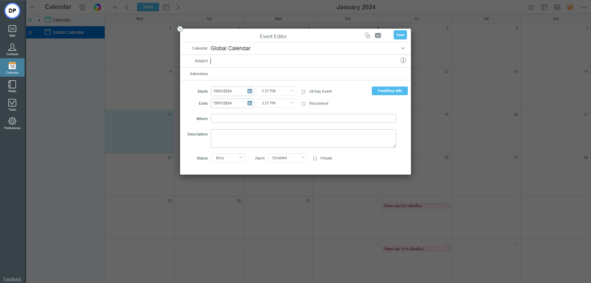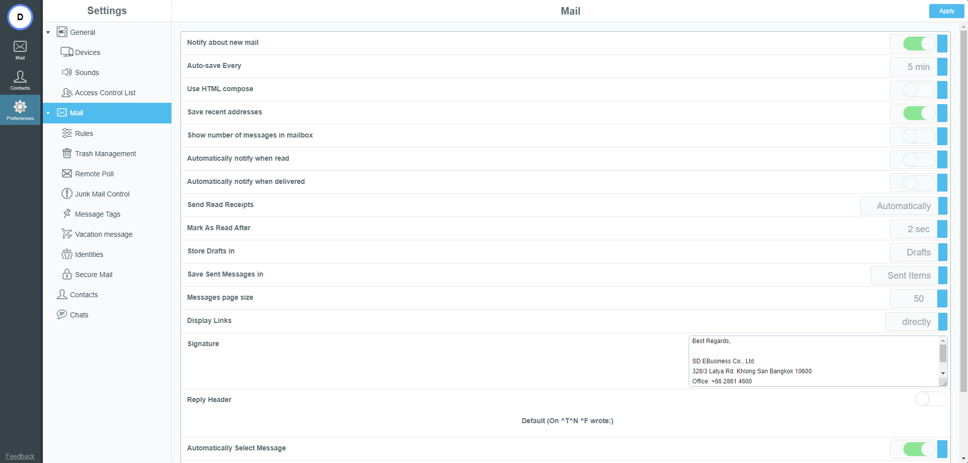 Debut Mail Pro 3 (50 Users) Debut Mail Pro 3 (50 Users) 2 GB/Account หากต้องการย้ายโดเมนหรือต่ออายุโดเมน สามารถติดต่อได้ที่ [email protected] หรือ 098-952-4147, 098-253-8222, 095-536-5945 *ราคาไม่รวมค่าบริการ Domain Name **สำหรับลูกค้าใหม่ มีบริการย้ายอีเมลจากระบบเก่าให้ฟรี! ราคารวม 33,000.00 บาท จำนวนผู้ใช้งาน ภาพรวม Debut Mail Pro 3 บริการอีเมลสำหรับบริษัท ธุรกิจ องค์กร จำนวน 50 ผู้ใช้งาน ขนาดพื้นที่ 2 GB ต่อบัญชี เหมาะสำหรับบริษัทหรือธุรกิจขนาดกลาง ฟังก์ชันการใช้งานพื้นฐานของระบบอีเมล ปลอดภัยด้วยระบบ Anti Spam และ Antivirus ราคาไม่รวมค่าบริการ Domain Name สำหรับลูกค้าใหม่ มีบริการย้ายอีเมลจากระบบเก่าให้ฟรี! ฟังก์ชันการใช้งานเฉพาะ Debut Mail Pro Groupware Function การทำงานร่วมกันภายในองค์กร ทั้งการใช้งาน Mail, Contacts, Calendar, Tasks, Notes รวมทั้งสามารถ Shared Calendar และ Public Folders ได้ MAPI ผู้ใช้สามารถ Synchronize ทุก Mailbox, Contacts, Calendar, Tasks, Notes, Shared Folders และ Public Folders บนโปรแกรม Microsoft Outlook ได้ รวมถึงตั้งค่า Rules และ Vacation Message Share Mailbox การอนุญาตให้ผู้อื่นเข้ามาจัดการอีเมลได้ เช่น การ Share Public Folder, การ Share ตารางนัดหมาย, การ Share Global Contact ของบริษัทหรือของแผนก เป็นต้น ฟังก์ชันการใช้งานพื้นฐาน Company First Page บริการออกแบบหน้าแรกของเว็บไซต์ล็อกอินอีเมล (Webmail) ในรูปแบบของบริษัท ธุรกิจ องค์กร พร้อมแสดง Logo เพื่อเป็นเอกลักษณ์เฉพาะ (*ฟรี ตั้งแต่ 200 ผู้ใช้งานขึ้นไป). Company Style บริการออกแบบหน้าแรกและแต่ละหน้าของเว็บไซต์อีเมล (Webmail) ในรูปแบบของบริษัท ธุรกิจ องค์กร พร้อมแสดง Logo เพื่อเป็นเอกลักษณ์เฉพาะ (*ฟรี ตั้งแต่ 200 ผู้ใช้งานขึ้นไป) General Email Services ระบบการรับ-ส่ง อีเมล, การส่งไฟล์แนบพร้อมอีเมล, การส่งต่ออีเมล (Forward), ความสำคัญของอีเมล (Priority) General Mailboxes กล่องอีเมลพื้นฐานของระบบอีเมล Inbox, Drafts, Send Items, Trash, Junk, Contacts Multi Mailboxes สามารถเพิ่มกล่องข้อความได้ ในกรณีต้องการจัดหมวดหมู่ของข้อความ Multi Language ผู้ใช้สามารถรับอีเมลได้หลายภาษา เช่น ไทย, จีน, ญี่ปุ่น เป็นต้น สามารถแสดงคำสั่งการใช้งานเป็นภาษาอื่น ๆ เช่น จีน, ญี่ปุ่น, เยอรมัน เป็นต้น Vacation Message กรณีที่มีกิจธุระที่ไม่สามารถรับและตอบอีเมลได้ สามารถใช้ฟังก์ชันนี้เพื่อตอบกลับอัตโนมัติตามช่วงเวลาที่กำหนด Flag Message ทำเครื่องหมาย Flag ที่อีเมล เพื่อเป็นการกำหนดสถานะให้กับอีเมล โดยสถานะเหล่านี้อาจบ่งบอกถึงระดับความสำคัญ ระดับความเร่งด่วน หรือประเภทของการดำเนินการที่ต้องการดำเนินการกับอีเมล Notification Delivery Message การแจ้งกลับให้ทราบเมื่อข้อความที่ส่งไป ได้ถึงจุดหมายปลายทางเรียบร้อยแล้ว Notification Read Message การแจ้งกลับให้ทราบเมื่อผู้รับได้อ่านอีเมลแล้ว Signature ลายเซ็นหรือข้อความต่อท้ายอีเมล Address Book สมุดรายชื่ออีเมล และยังสามารถทำ Group Address Book เพื่อสะดวกต่อการใช้งาน Global Address Book รายชื่ออีเมลของบริษัท ธุรกิจ หรือองค์