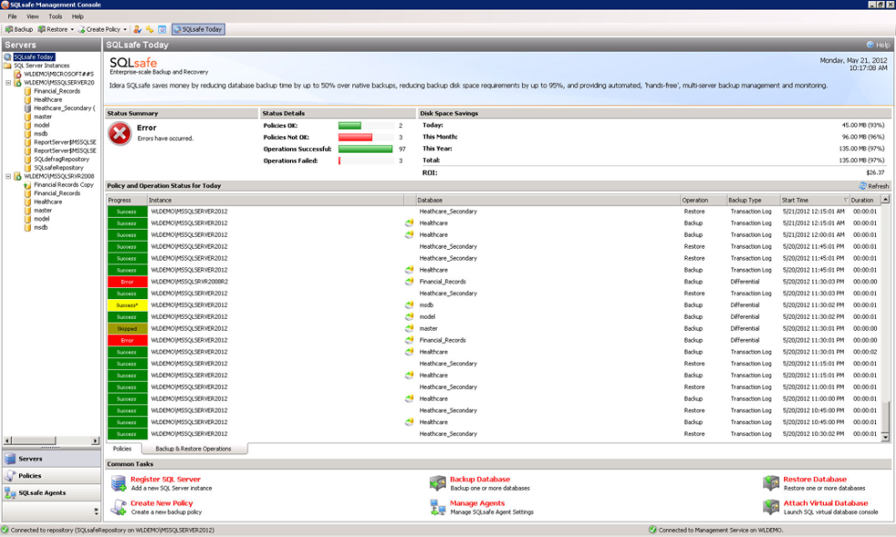 SQL Maintenance Suite provides complete SQL Server maintenance, from backup andrestore management, to agent job management and monitoring, and index defragmentation. Save almost 20% versus buying each product separately. Plus, save an additional 20% when you purchase in the online store.