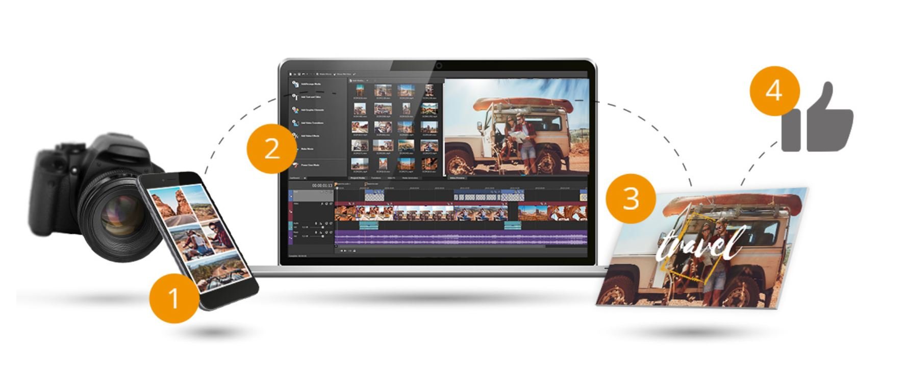 Import video and digital photos from your smartphone, tablet, or video camera.