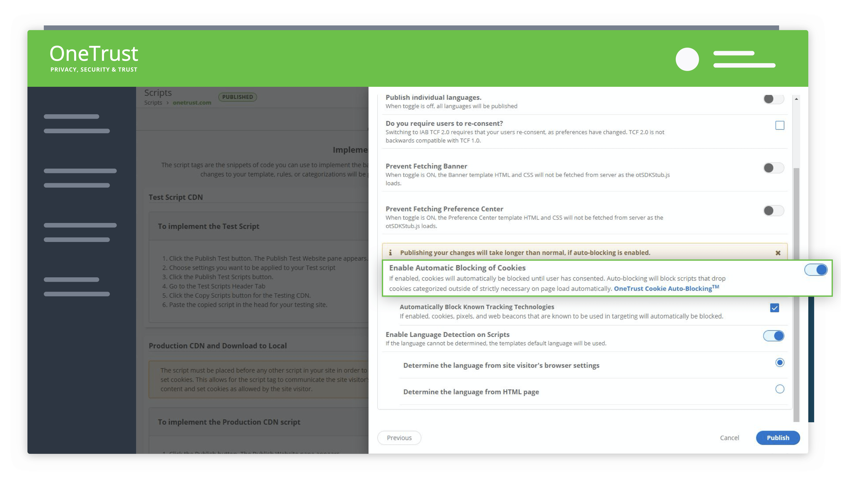 Continued scanning to keep an evergreen inventory of tracking technologies and up to date policies across your web properties