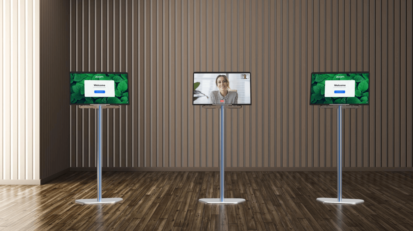 With Zoom Rooms Kiosk mode, engage face to face with a virtual receptionist anywhere an in-person receptionist could be - office, hotel, lobby, or other location. Brand the display and customize the message to match the environment and purpose.
